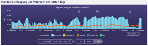 Für die Stadt Pattensen mit seinen Ortsteilen gibt es jetzt einen Online-Energie-Monitor. Unter https://energiemonitor.avacon.de/pattensen wird angezeigt, wieviel Strom gerade in Pattensen verbraucht wird und wieviel Strom von herkömmliche Energieträger bzw. von erneuerbaren Energiequellen erzeugt wird. Die Anzeige aktualisiert sich alle 15 Minuten. Man bekommt hier einen sehr guten Eindruck, wie viel Erneuerbare Energien tatsächlich vorhanden sind, wann wir lokal mehr Energie erzeugen als im Stadtgebiet verbraucht wird und wann wir abhängig von der Einspeisung aus dem Netz sind.