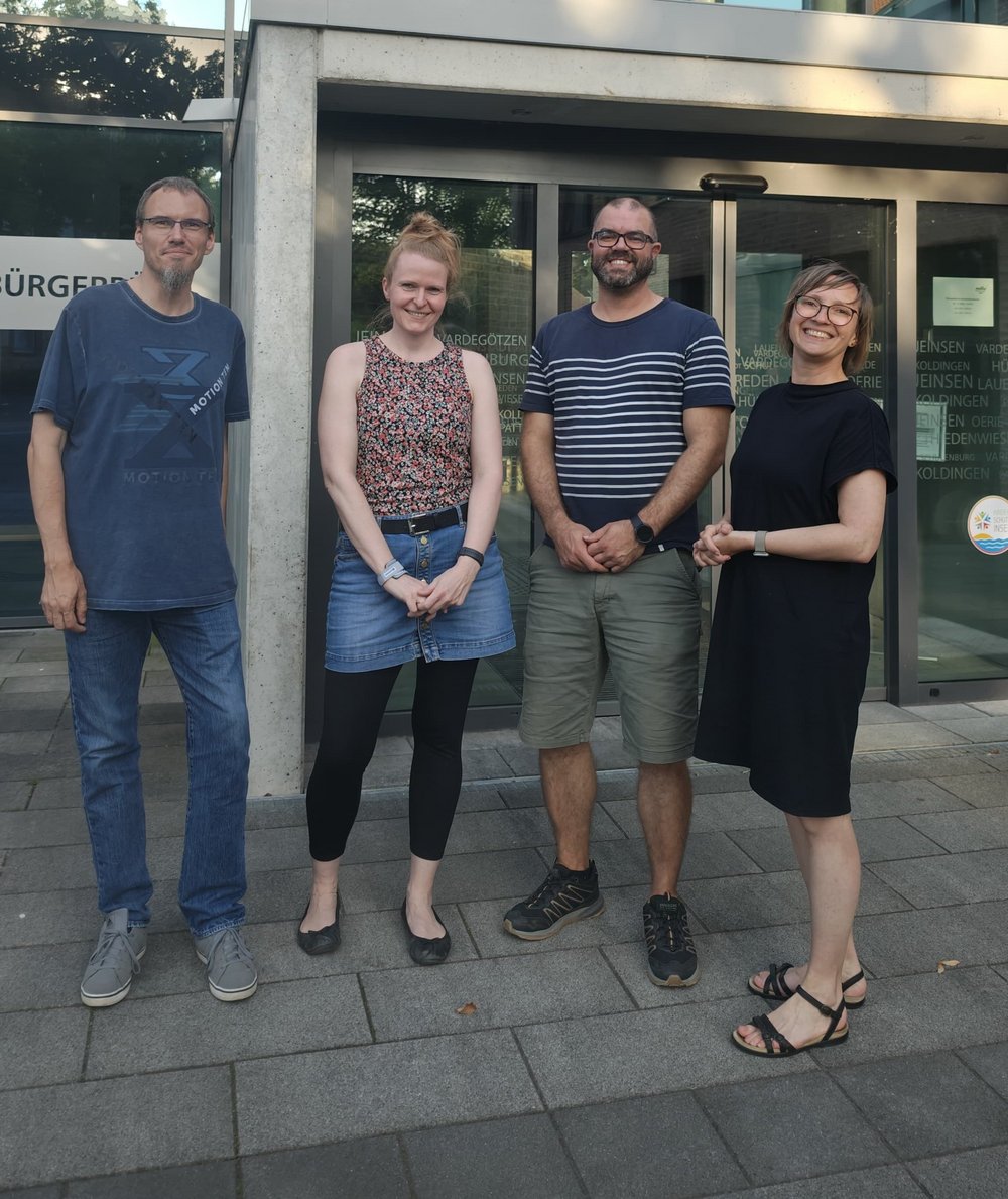 Am 13.6. fand unsere Mitgliederversammlung und Vorstandswahl statt. Im Amt für zwei weitere Jahre bestätigt wurden Nicole Schwarzer (Schatzmeisterin) und Dirk Landsberg (1. Vorsitzender). Als 2. Vorsitzender wurde Christoph Koch-Tilch von Julia Klimzeck abgelöst. Auch auf die RechnungsprüferInnen Sandra Stets und Uwe Hammerschmidt folgten nun Daniel Tzschentke und Malin Kleuker (nicht auf dem Foto). Des weiteren wurden Grüne Ratsinitiativen, außerparteiliches Engagement und erste Planungen für die Kommunalwahl 2026 besprochen.